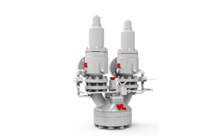 ● 三通流路設計, 一個工位安裝兩個相同的安全閥,其中一個在線進行超壓保護,而另一個則作為維修備用